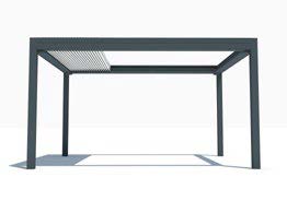 Techniquement très évoluée, le pavillon ombragé de luxe VISION 400 offre, en plus de l’orientation des lames, la rétractation de ces dernières de manière unilatérale.